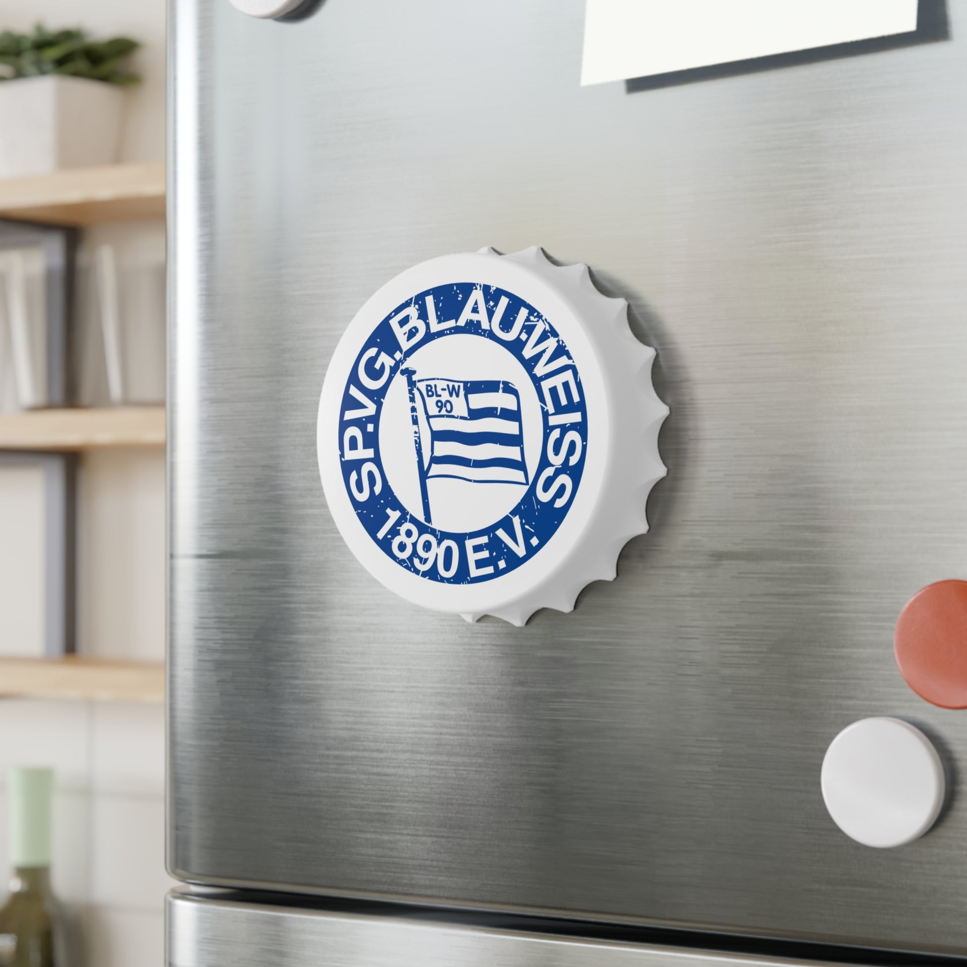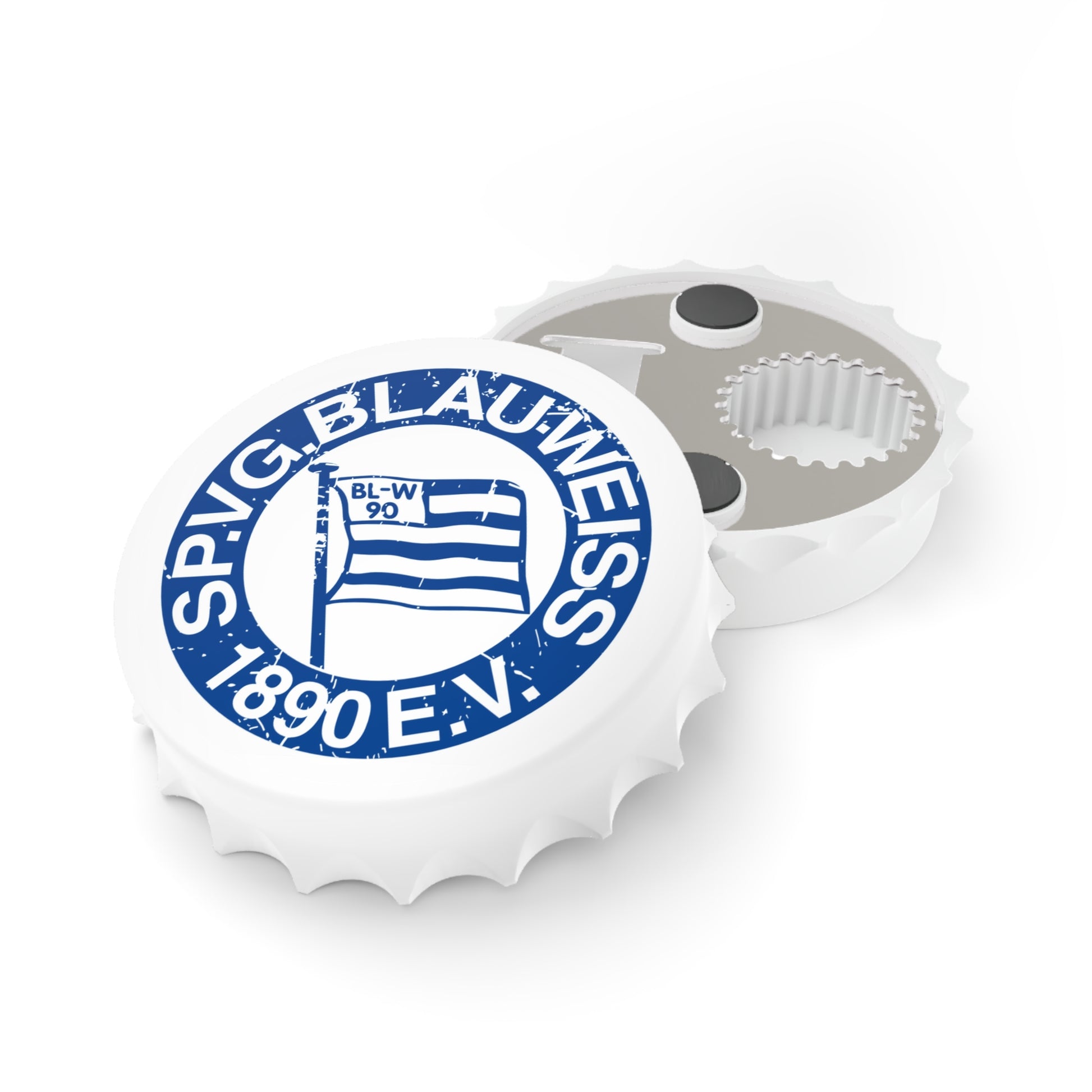 Dieser stilvolle Flaschenöffner ist ein Muss für alle, die Blau-Weiss 90 nicht nur im Herzen, sondern auch am Kühlschrank tragen wollen. Das Vereinsemblem erscheint hier in einem charmanten Vintage-Look, der gekonnt Retro-Flair mit Funktionalität verbindet.